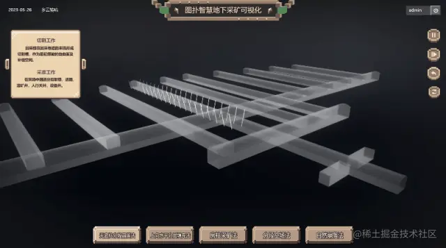 - 进行仿真:利用数字孪生模型进行仿真,模拟房柱采矿法的三维全过程。可以包括开采、支护、运输等等。