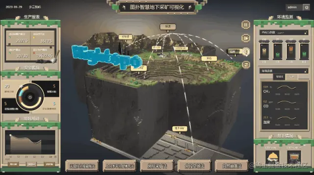 图扑软件依托自主研发的 HT for Web 产品,结合三维定制化渲染、动态模拟、物理碰撞、5G、物联网、云计算及大数据等先进技术,围绕地下采矿相关的实时监控、数据分析、人工智能等生产、运营和管理目标,实现对勘探、开采、处理和管理四个阶段的全面监控和管理。通过这个平台,我们可以随时掌握矿区的情况,对矿区进行精细化管理,提高采矿效率和工作安全性。让我们一起进入这个像素世界,开启智能地下采矿可视化的探索之旅吧!