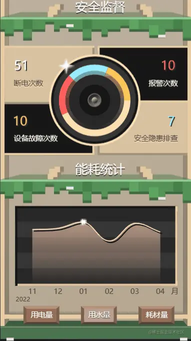 通过项目总览页面,我们可以看到一个栩栩如生的三维全地形还原,它可以帮助我们直观地了解矿区的地形和地貌。同时,我们还可以通过能源监测模块,实时监测矿区的电力、水力等能源的使用情况,为矿区的能源管理提供参考。