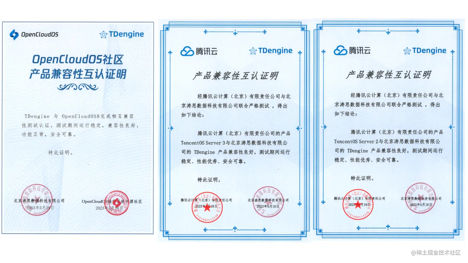 近日,经过数月努力,涛思数据旗下时序数据库(Time Series Database) TDengine 先后与腾讯云多个产品线完成产品兼容性互认证明。在联合测试环节,TDengine 与 OpenCloudOS 8、TencentOS Server 3、TencentOS Server 2 的兼容性表现均良好,测试期间运行稳定、性能优秀、安全可靠,最终成功与三大操作系统获得产品兼容性互认证明。