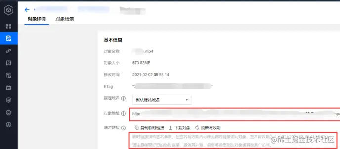 腾讯云COS搭建个人视频点播服务 粤海科技君 2023-06-21 274 阅读1分钟 随着个人视频文件越来越大,上传到云盘的话,下载太慢了,在线观看又非常慢,于是本文将介绍您使用腾讯云COS做视频点播服务: 1、开通COS服务 2、创建COS存储桶 3、设置COS权限 关于COS权限方面,如果是自己使用,建议私有读写,防止地址泄露后,文件被读产生流量费用及文件隐私泄露。 4、上传文件 通过COS控制台上传视频文件,如图: 5、获取视频地址 通过COS控制台获取视频地址,如下图 可以根据需要选择临时的或者永久的URL地址,然后再发送视频URL地址给好友,就可以视频播放了.