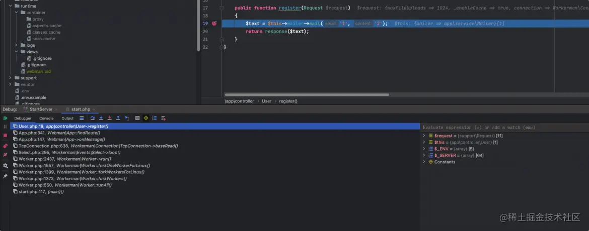 PS:要提醒一点,如果打开小电话监听,webman就无法热重载了。不需要debug的时候请关闭小电话,