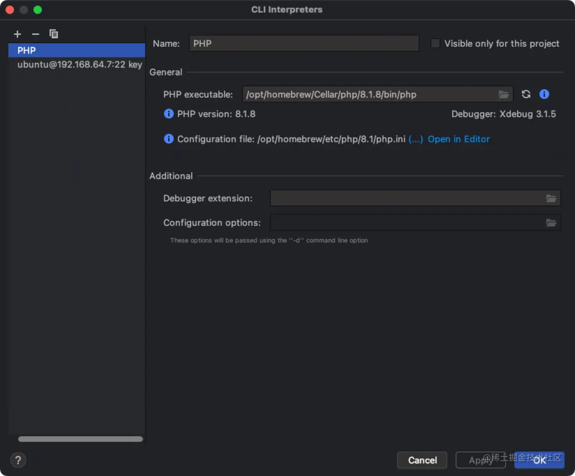 CLI Interpreters配置,注意Debugger那里,必须要有Xdebug的信息