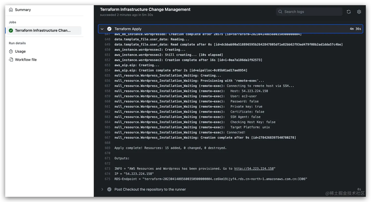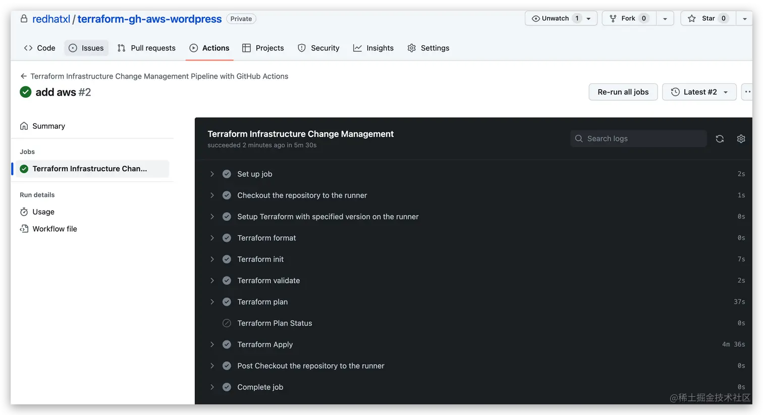 综合来看,GitHub Actions 集成 Terraform 方案具有许多优点,可以帮助开发者实现自动化部署和流程简化,提高开发效率和可靠性。但是,也需要注意学习成本、复杂性、安全问题和成本问题等方面的注意事项。