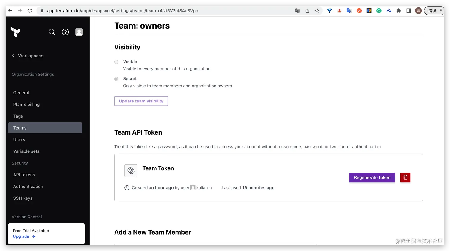 - 配置 Terraform Cloud API 密钥:在 GitHub 中,您需要在您的存储库设置中配置 Terraform Cloud API 密钥。此 API 密钥用于与 Terraform Cloud 进行通信并执行 Terraform 部署。确保保护此 API 密钥并遵循最佳安全实践。
