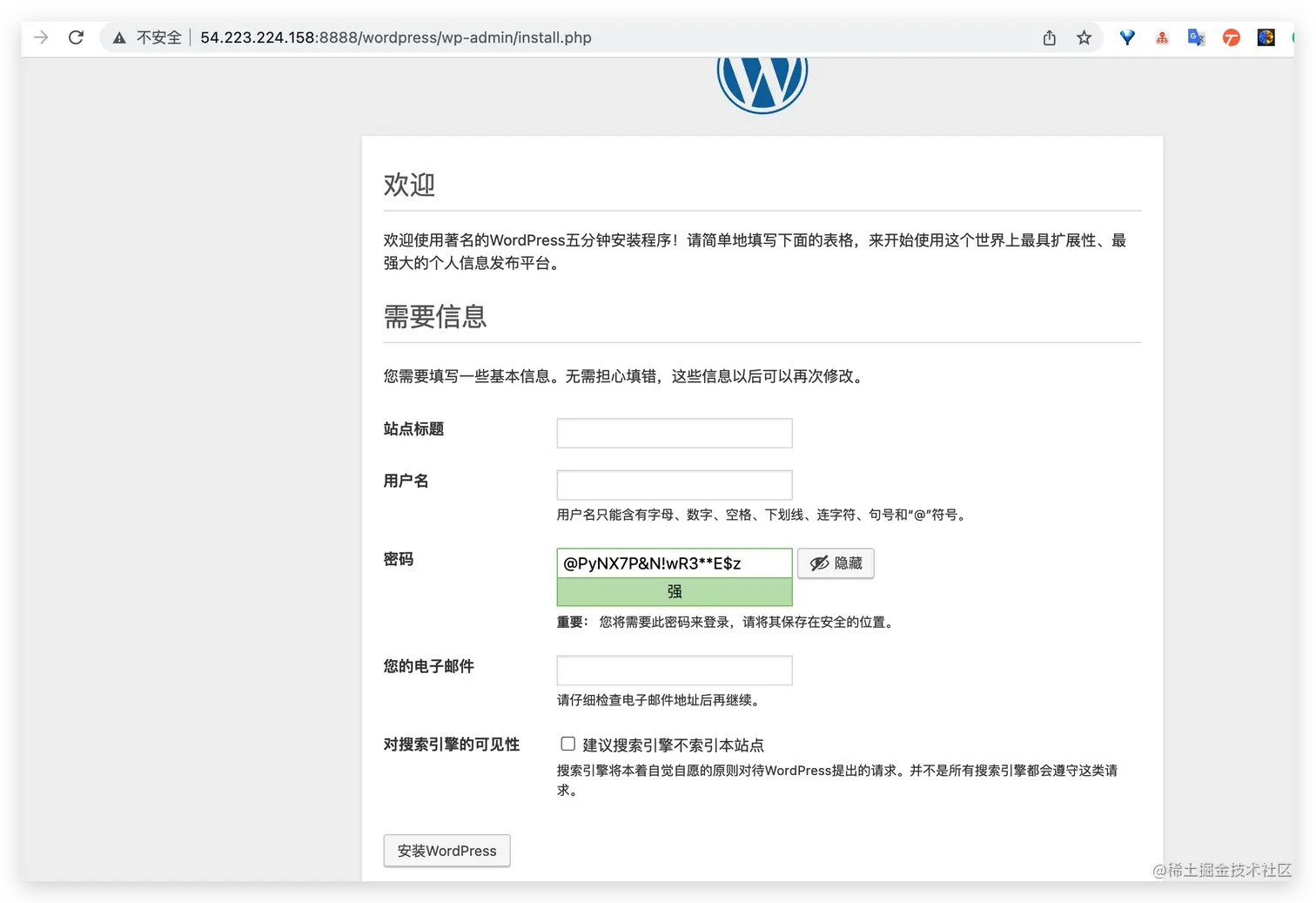 由于aws 80端口需要备案,因此修改端口为8888