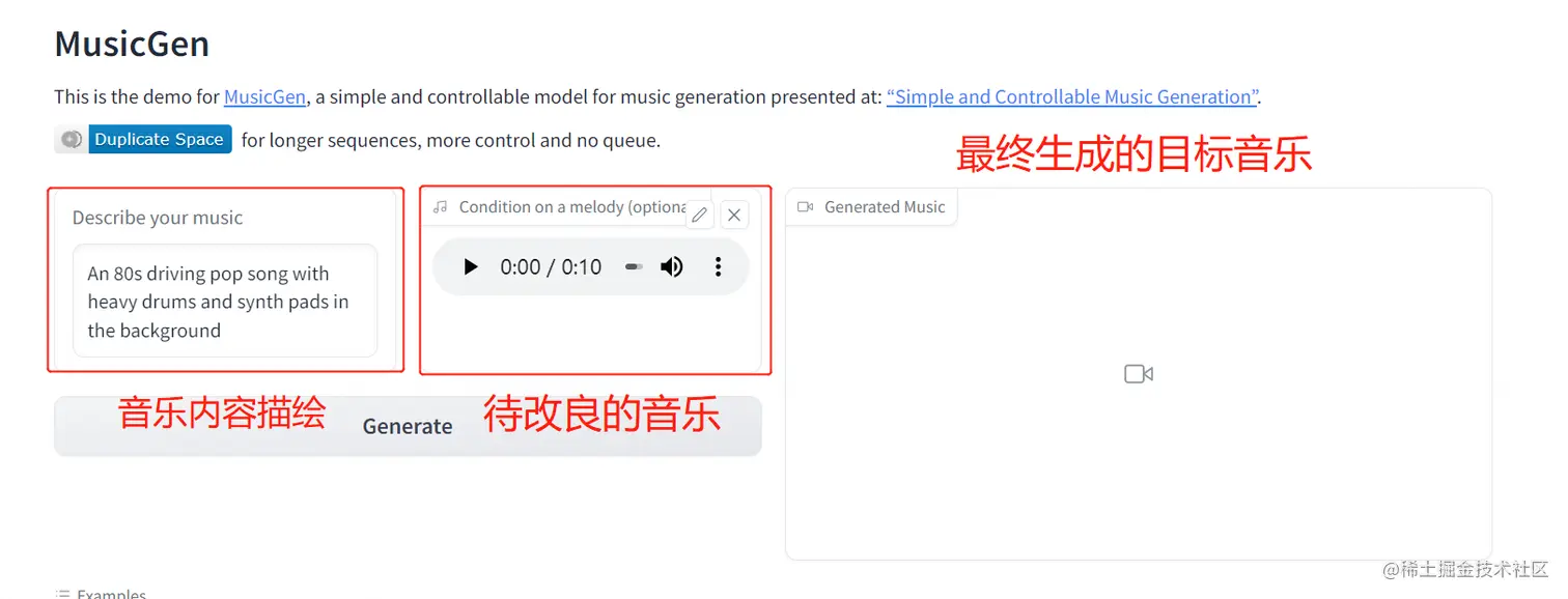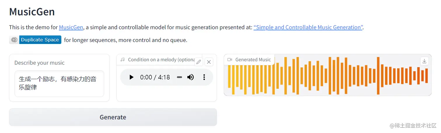 进入MusicGen社区应用,点此链接