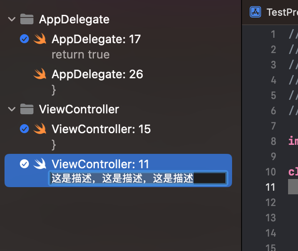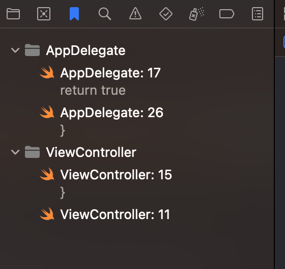 Xcode 15 的左侧导航中把第三个 Tab 的 Symbol navigator 换成了一个新的 Bookmark(书签)的功能,可以把某个文件或者某行代码标记在这里,便于以后查找。