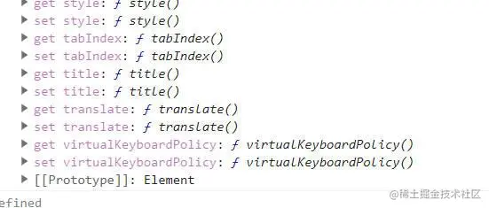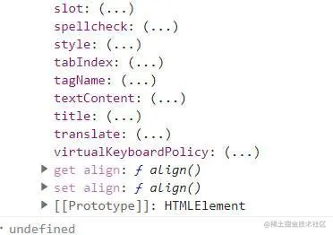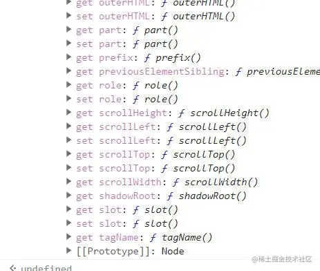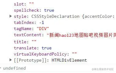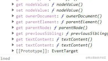 我们获取到的元素是什么呢?是一个对象,我们寻找一个div对象,let div =document.getElementsByTagName('div')[0];使用console.dir(div)来查看它的原型链。第一层原型是HTMLDivElement.prototype;第二层原型是HTMLElement.prototype;第三层原型是Element.prorotype;第四层原型是Node.prototype;第五层原型是EventTarget.prototype;第六层原型是Object.prorotype。