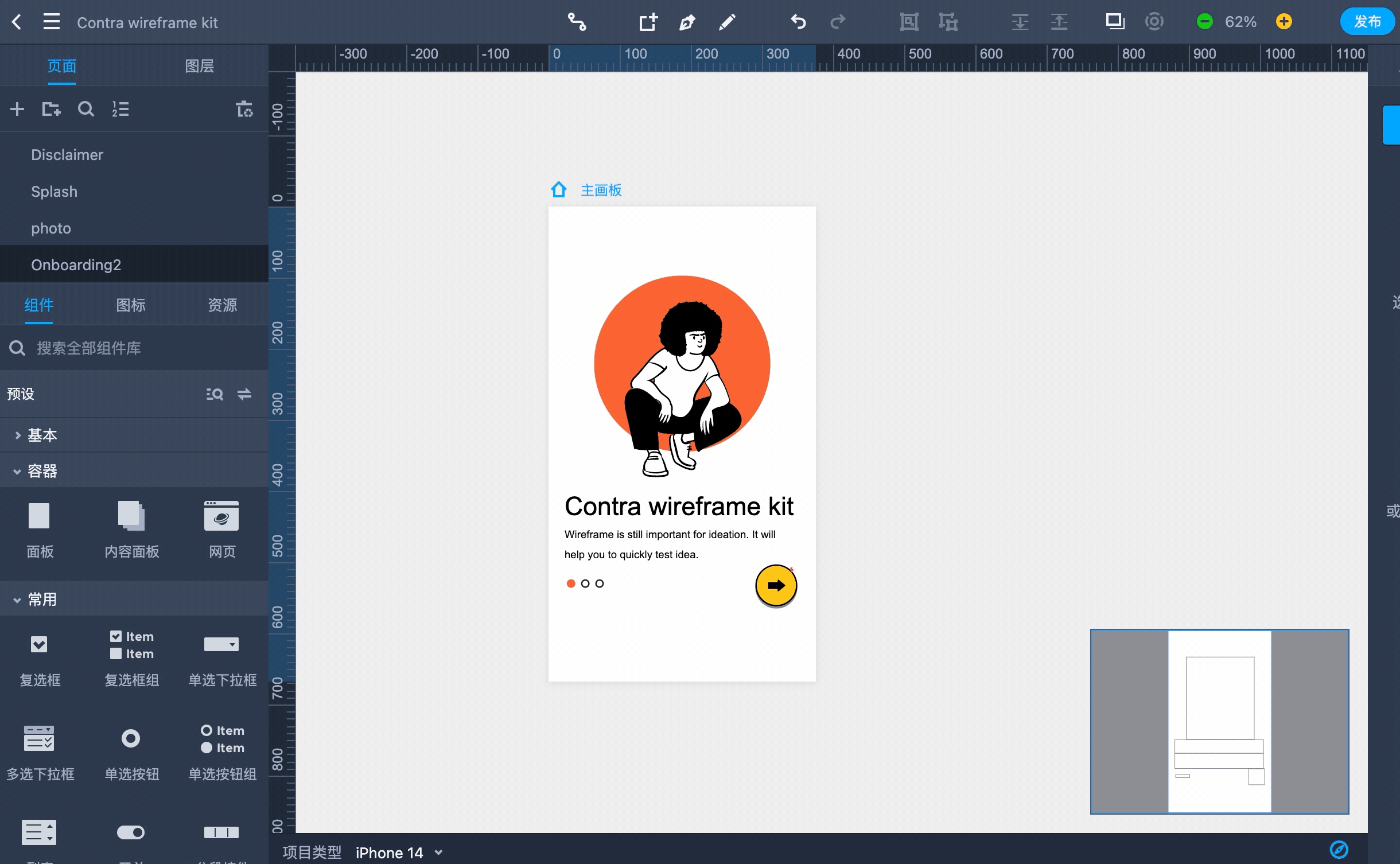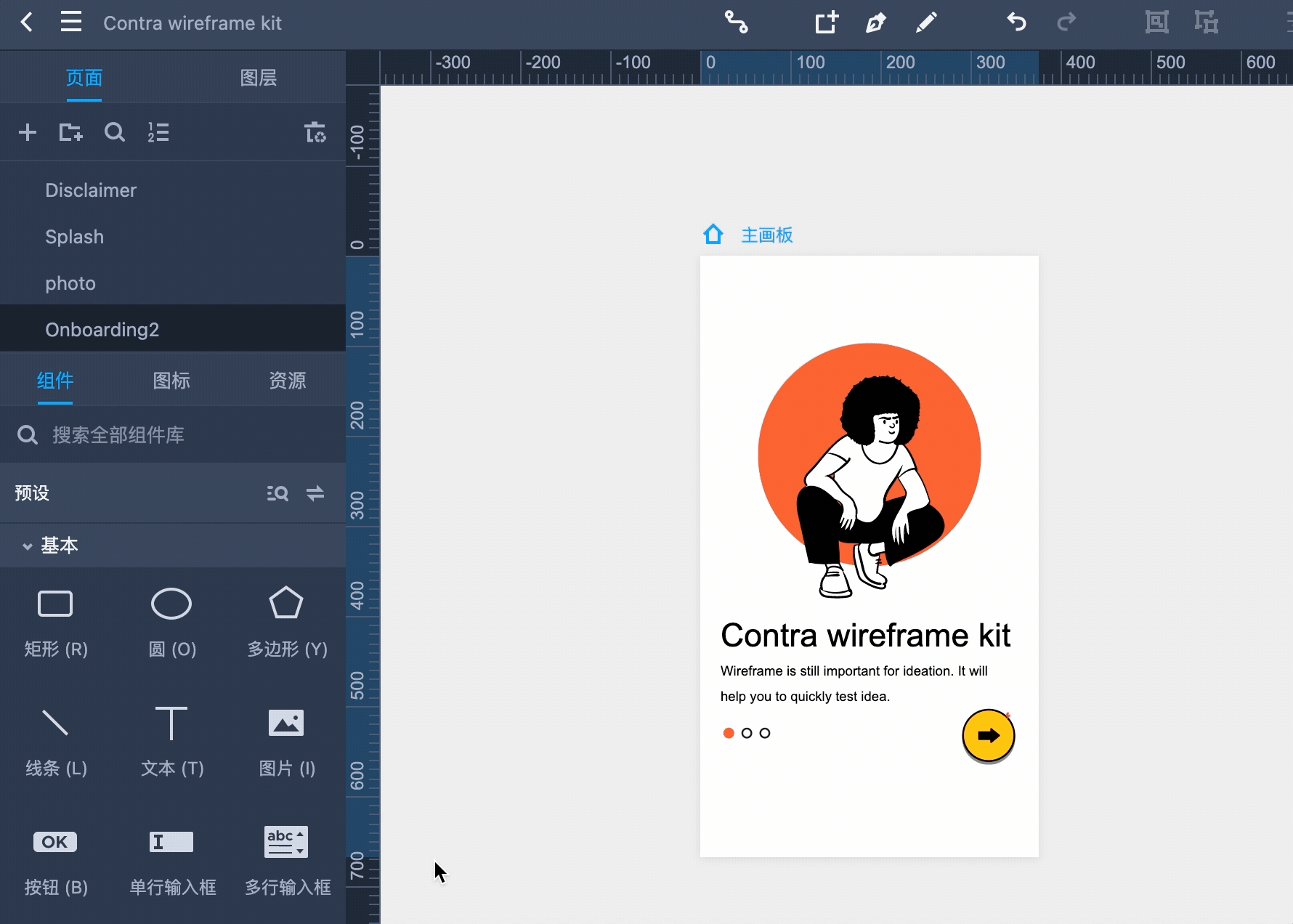 除了摹客RP自带的预设组件库外,目前摹客已经提供了8个国内外大厂高保真UI组件库,包括Ant Design,Element UI,TDesign,Arco Design,WeUI,iOS,macOS和Material Design。所有大厂UI组件库资源均可在摹客RP内拖拽即用,十分方便。