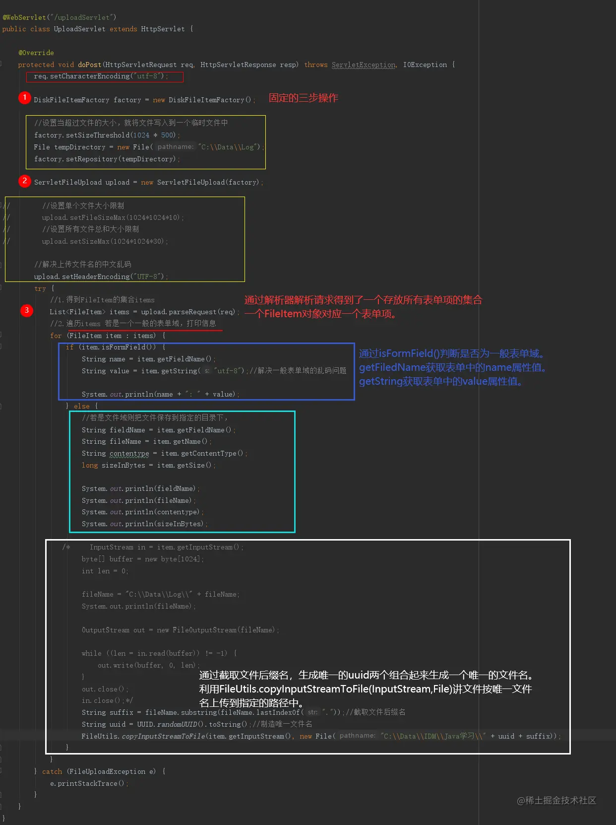 - 创建解析器:ServletFileUpload upload=new ServletFileUpload(factory);
