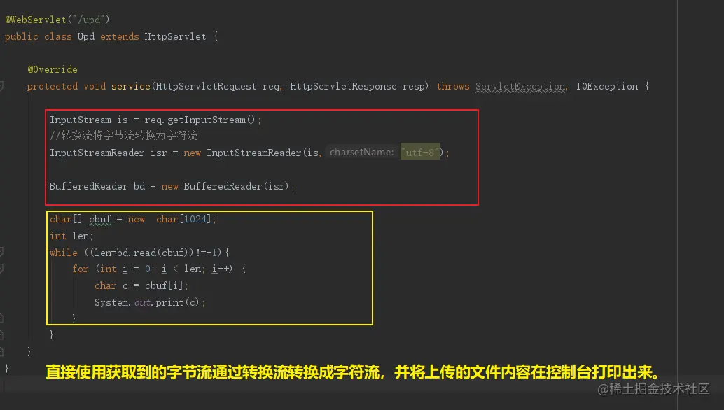 当我们使用request.getInput直接获取到的字节流,后续进行打印数据的时候。会自动加上许多表单,文件的属性和属性值,还有分隔符。上传的是纯文本文件时,打印出来还能看到清除文件内容。但当上传的是非文本文件的时候,自动加上的属性和属性值,会导致文件不能正常显示。这时候我们就需要解析request.getInpustream()。