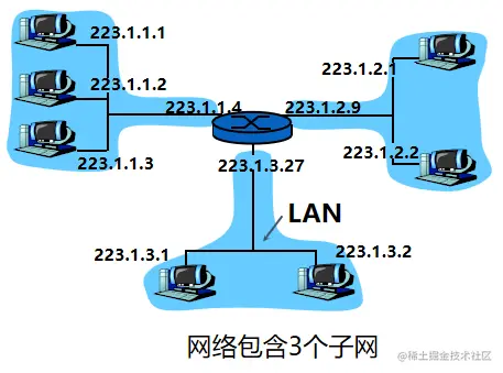网络号相同的IP地址属于同一个网络。而网络还可以划分为若干子网(subnet)。划分子网的方法是从主机号借用若干个比特作为子网号,剩下的主机位为主机号。在同一子网中,数据帧不跨越路由器,物理上能够相互到达。