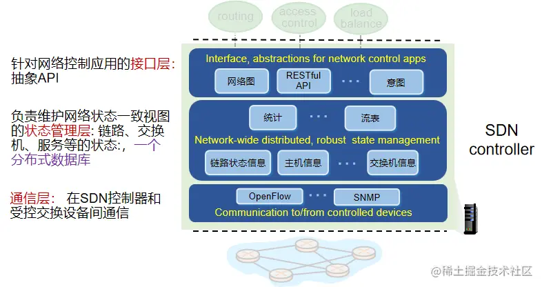 网络层:面向连接服务在端系统及网络核心的路由器中实现。