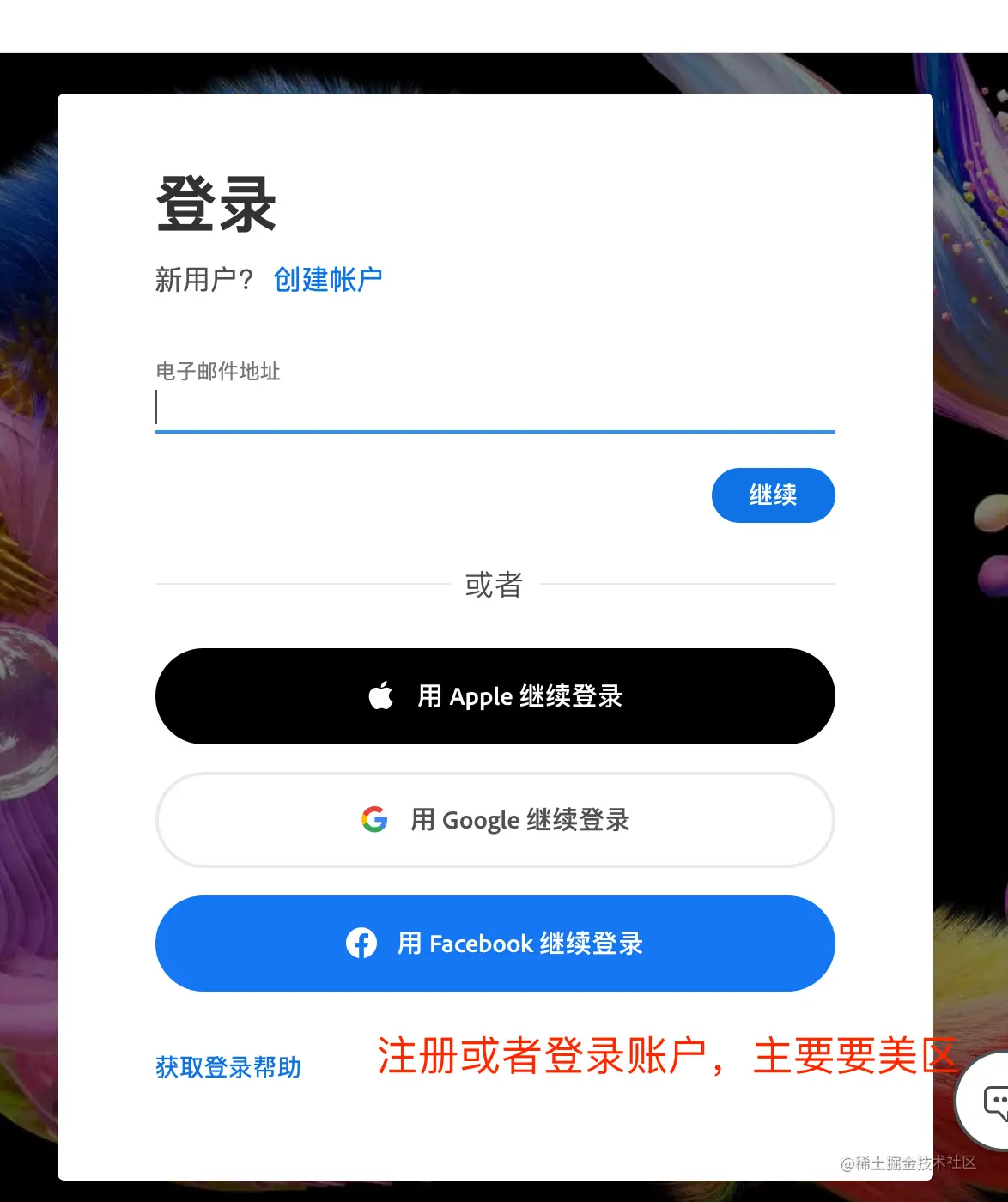 1、需要有一个adobe cloud的美区账号,下面会介绍如何注册。