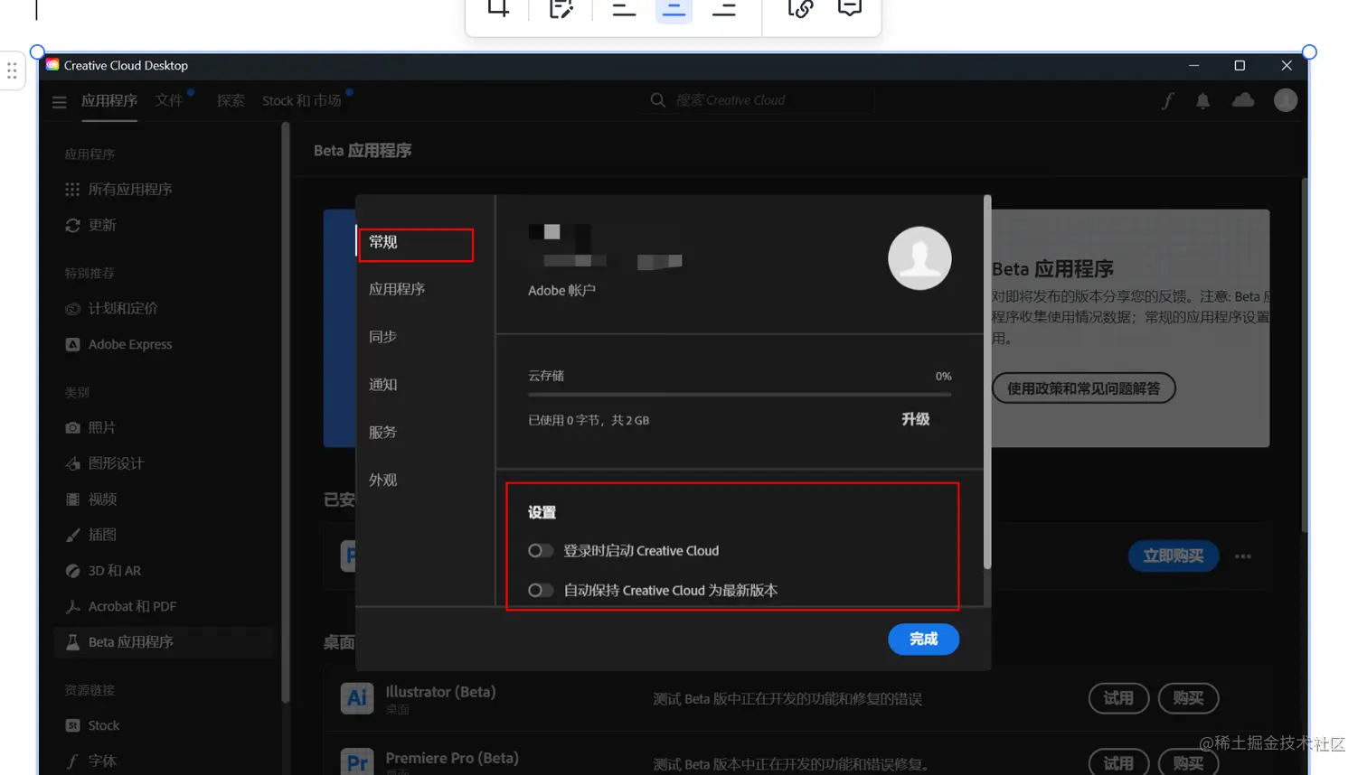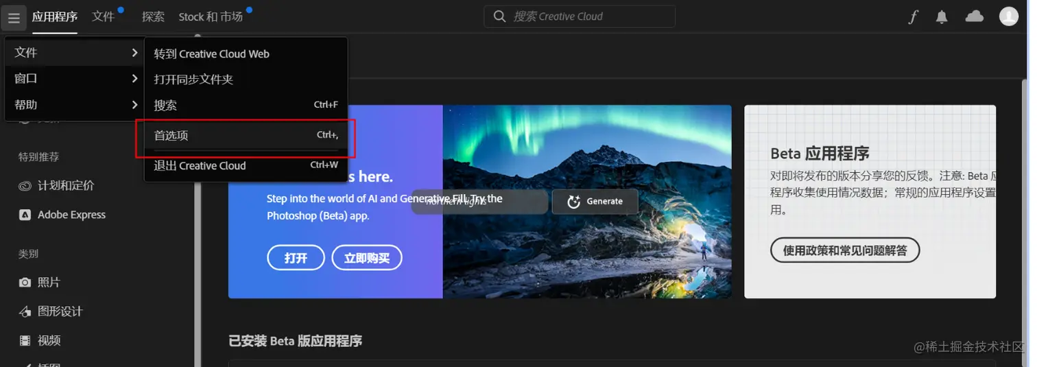 adobe creative cloud左上角三条横杠点一下,再点首选项,把自动更新什么的都关掉,很重要!!!