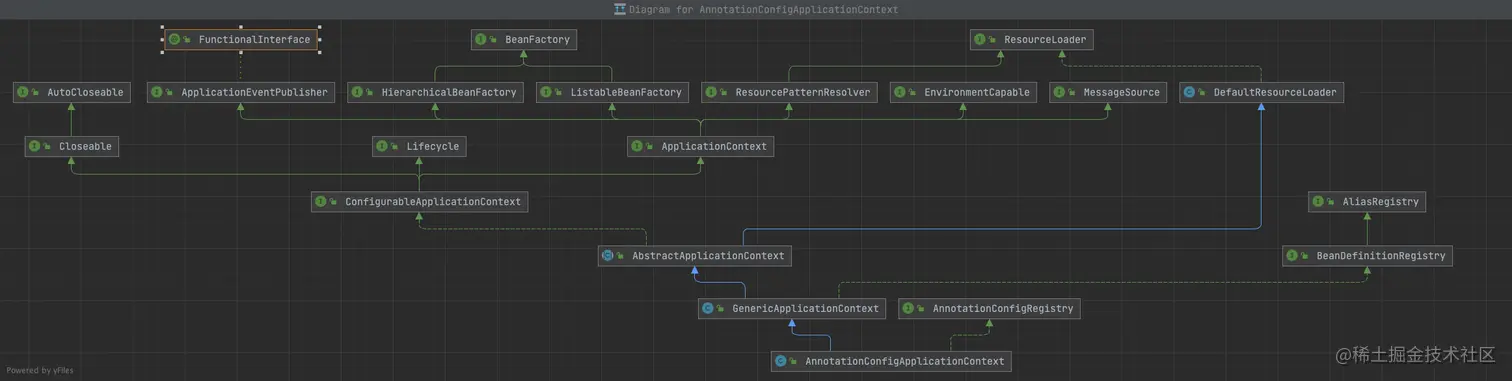 rg.springframework.context.ApplicationContext接口代表Spring IoC容器,负责实例化、配置和完成bean。容器通过读取配置元数据来获得关于要实例化、配置和配置元数据以XML、Java注解或Java代码表示。它可以让你表达构成你的应用程序的对象以及这些对象之间丰富的相互依赖关系。
