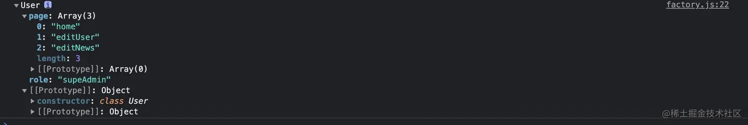 return new User('supeAdmin', ['home', 'editUser', 'editNews'])