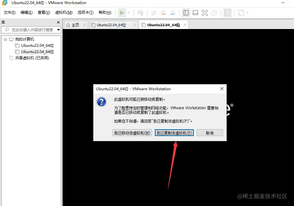 提示信息选 我已复制该虚拟机