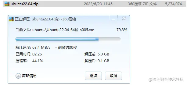 进入下载目录,解压ubuntu22.04.zip