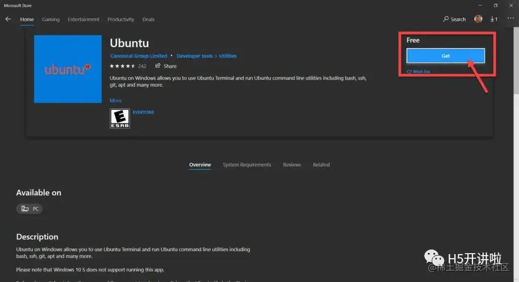 步骤2:点击“获取”按钮下载发行版。