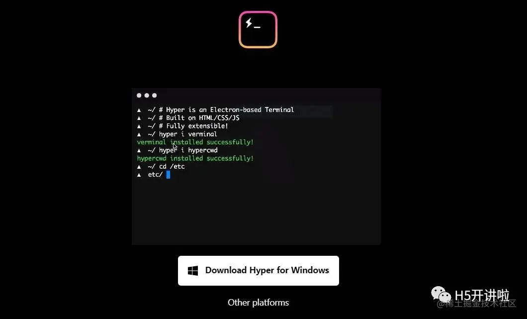 为了使用所有的自定义功能,我们需要一个支持它们的终端。因此,让我们安装 Hyper 终端,它是基于 JavaScript 构建的。