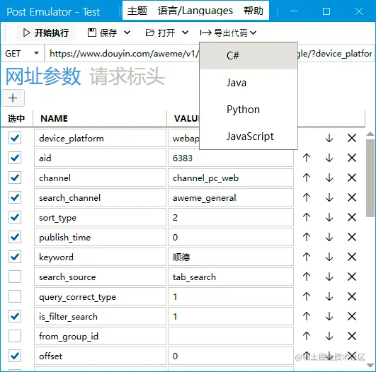 把请求任务导出为编程代码