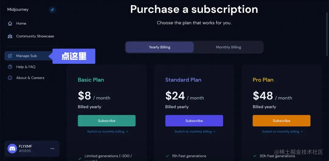 个人页面点击 Manage Sub 进入查看会员套餐,有按年和按月两种方式,不同价位有不同的套餐,购买最低档即可满足日常使用;需要信用卡支付。
