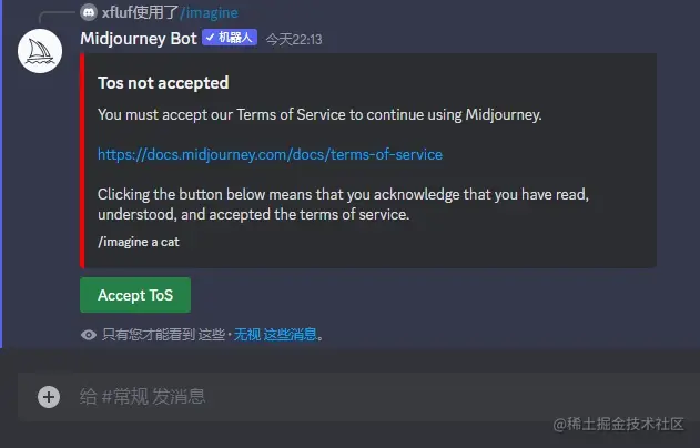 首次使用会出现此消息,点击"Accept ToS"按钮即可