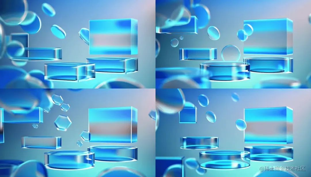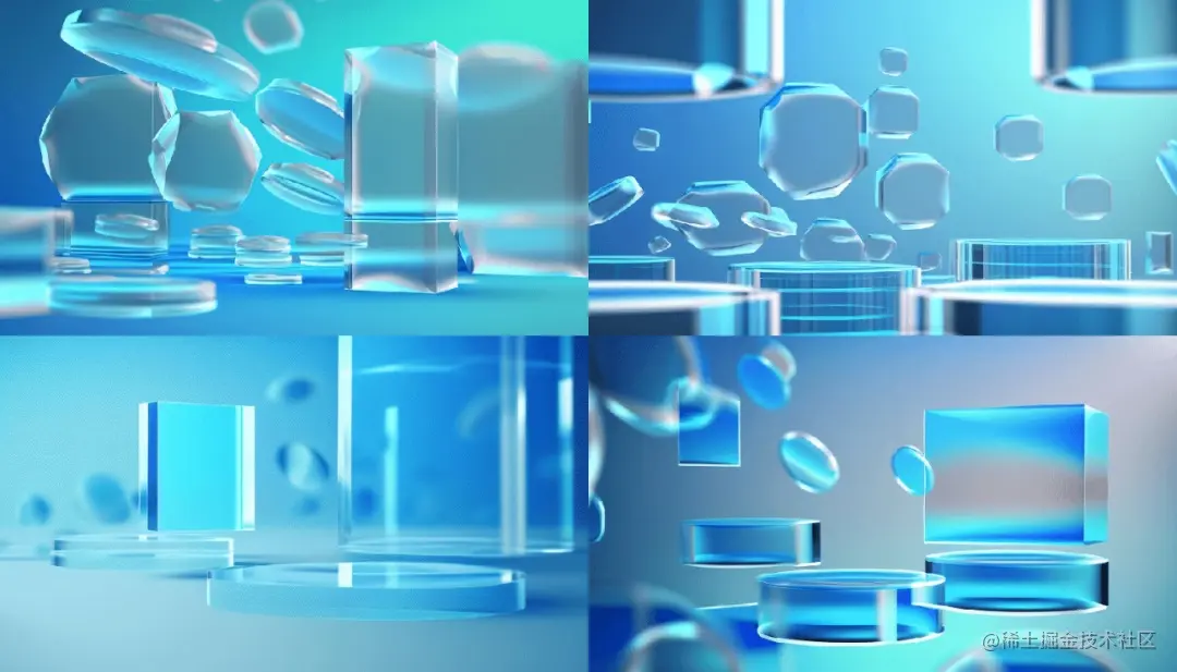 例:A background image with glass texture elements, translucent, light blue background, Center the composition, Ultrawide shot, 3d rendering, very clean --ar 16:9 --q 5