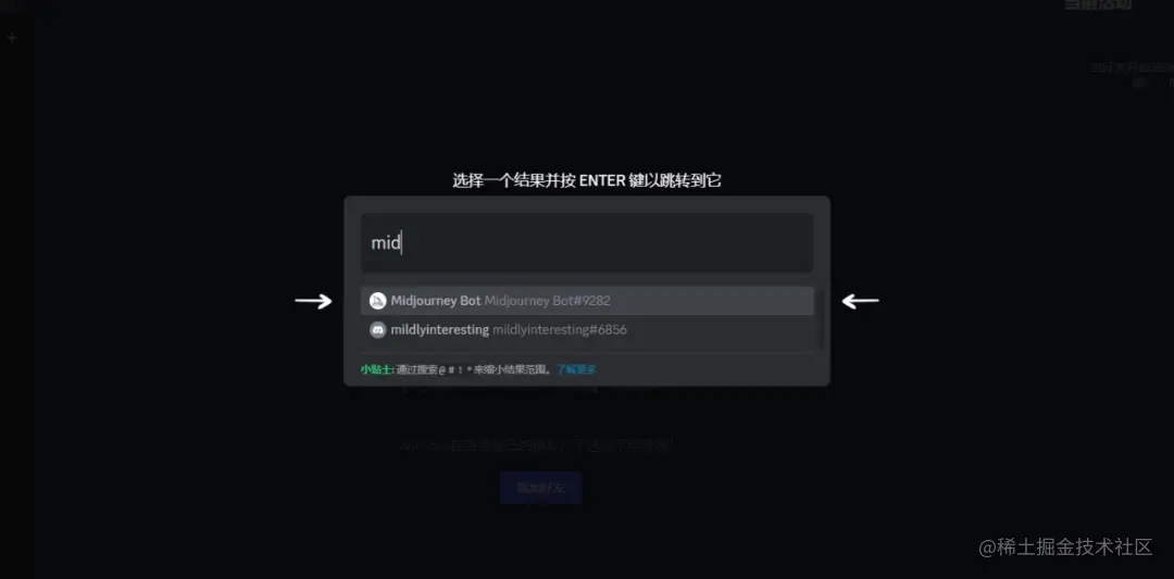 ② 打开与Midjourney Bot的对话:点击顶部的名称,在弹窗里选择"添加至服务器";