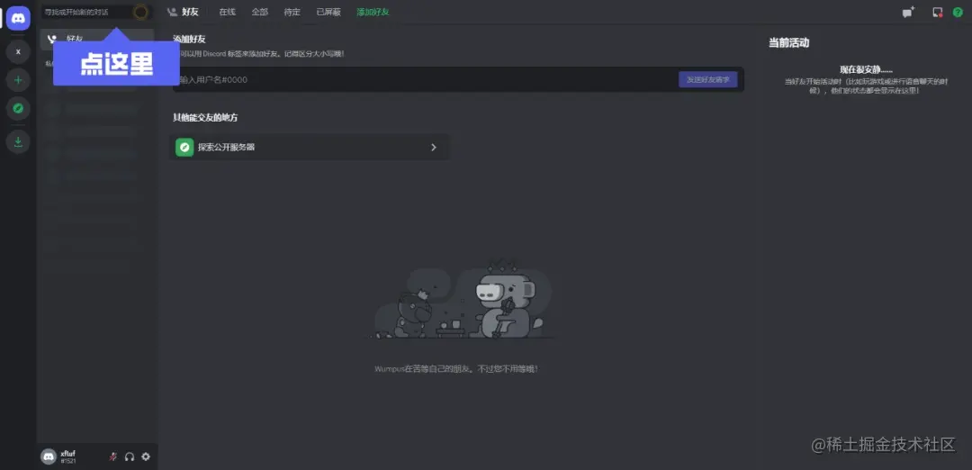 如果跳过了创建,之后可以在侧边栏里点击加号进行个人服务器创建