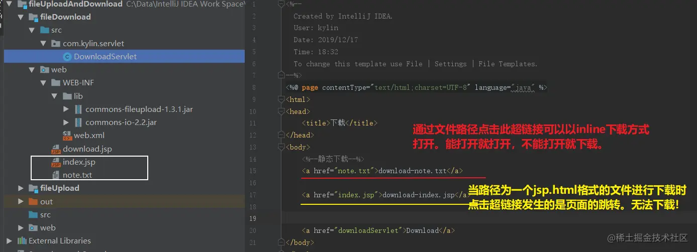 浏览器默认下载文件的方式为inline即能打开就打开,不能打开就下载。 通过给a标签href中的属性值赋值,可以完成对一些浏览器无法解析打开的文件进行下载。但是当要下载的文件浏览器能解析打开,要如何告诉浏览器进行下载此文件呢?