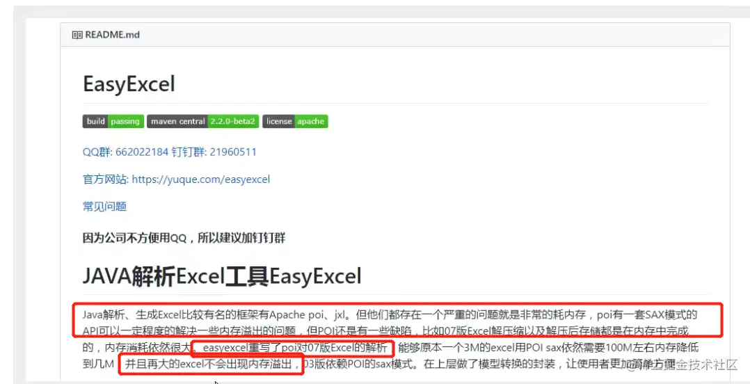 由于POI比较原生比较复杂,我们后研发出新的(工具)框架easyExcel,它是阿里巴巴退出的对于POI的后续产品,并且对POI做了升级和优化,不会因为excel数据量过大引起oom异常(内存溢出),使我们用起来更加的方便(读写Excel只需要一行代码!)