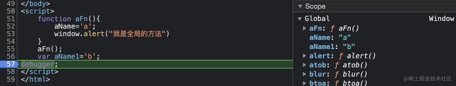 如下图一样,我们可以看到在浏览器的调试scope中三种类型的值都在全局的scope中。