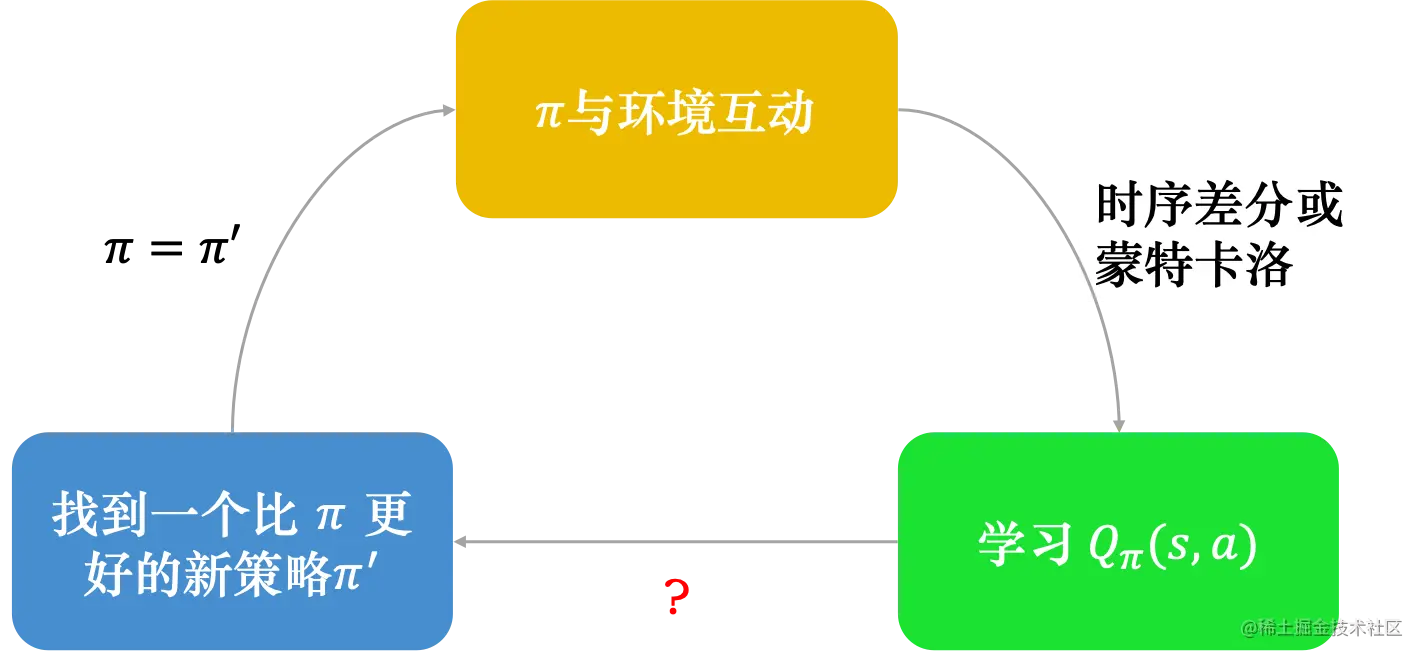我们可以估计某一个策略的Q函数,接下来就可以找到另外一个策略 比原来的策略还要更好。
