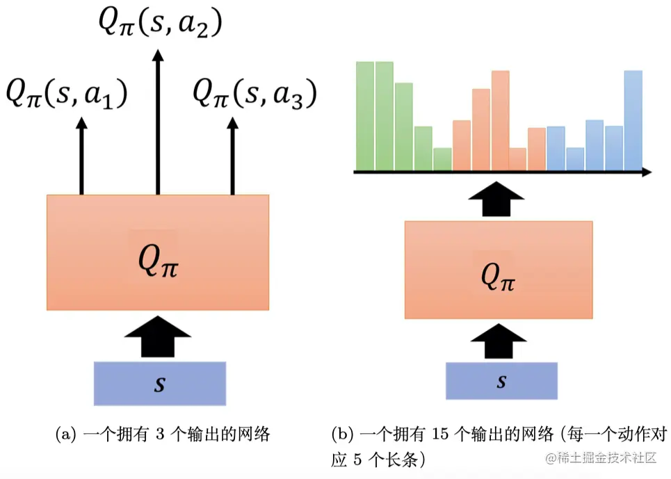 (1)如图 4.7a 所示,输入是状态与动作,输出就是一个标量。这种Q函数既适用于连续动作(动作是无法穷举的),又适用于离散动作。