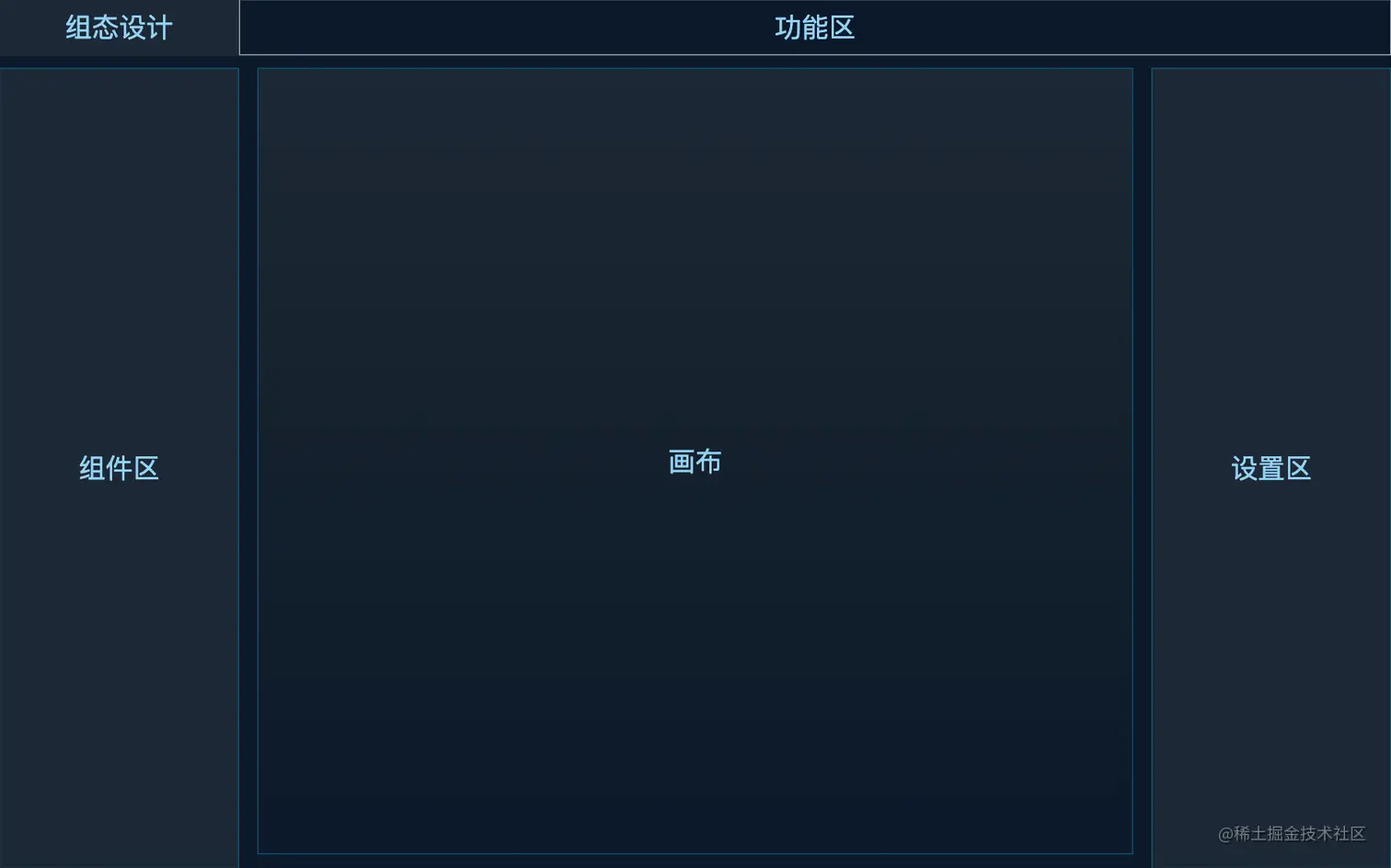 - 组件区:放置各种元件