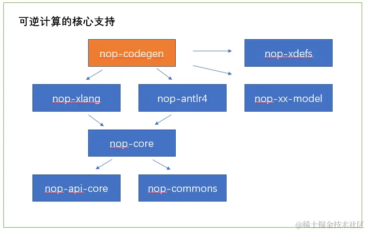Nop平台最核心的模块是nop-core、nop-xlang这两个模块。所谓的可逆计算原理的具体实现都集中在这两个模块中。