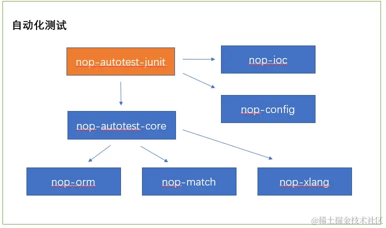 nop-autotest-junit提供JUnit框架集成所需的封装,并和nop-ioc、nop-config模块集成在一起,简化自动化测试用例的配置和使用