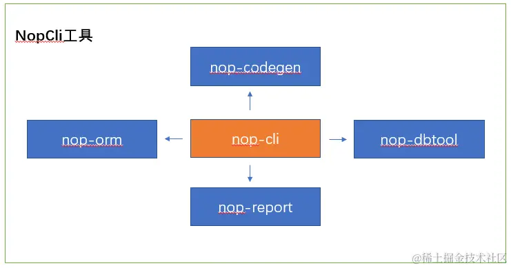nop-cli命令行工具聚合了一批可以独立使用的功能,具体参见cli.md