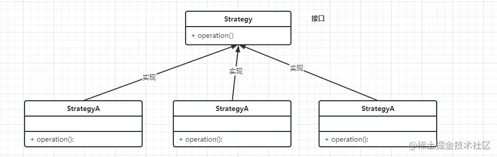 - 策略类的定义包含一个接口和一组实现类,后续增加策略只需要添加对应的实现类即可。