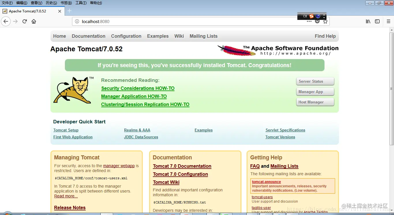 当你启动后可以在浏览器登录:http://localhost:8080来看你的服务器是否启动(启动成功的页面)