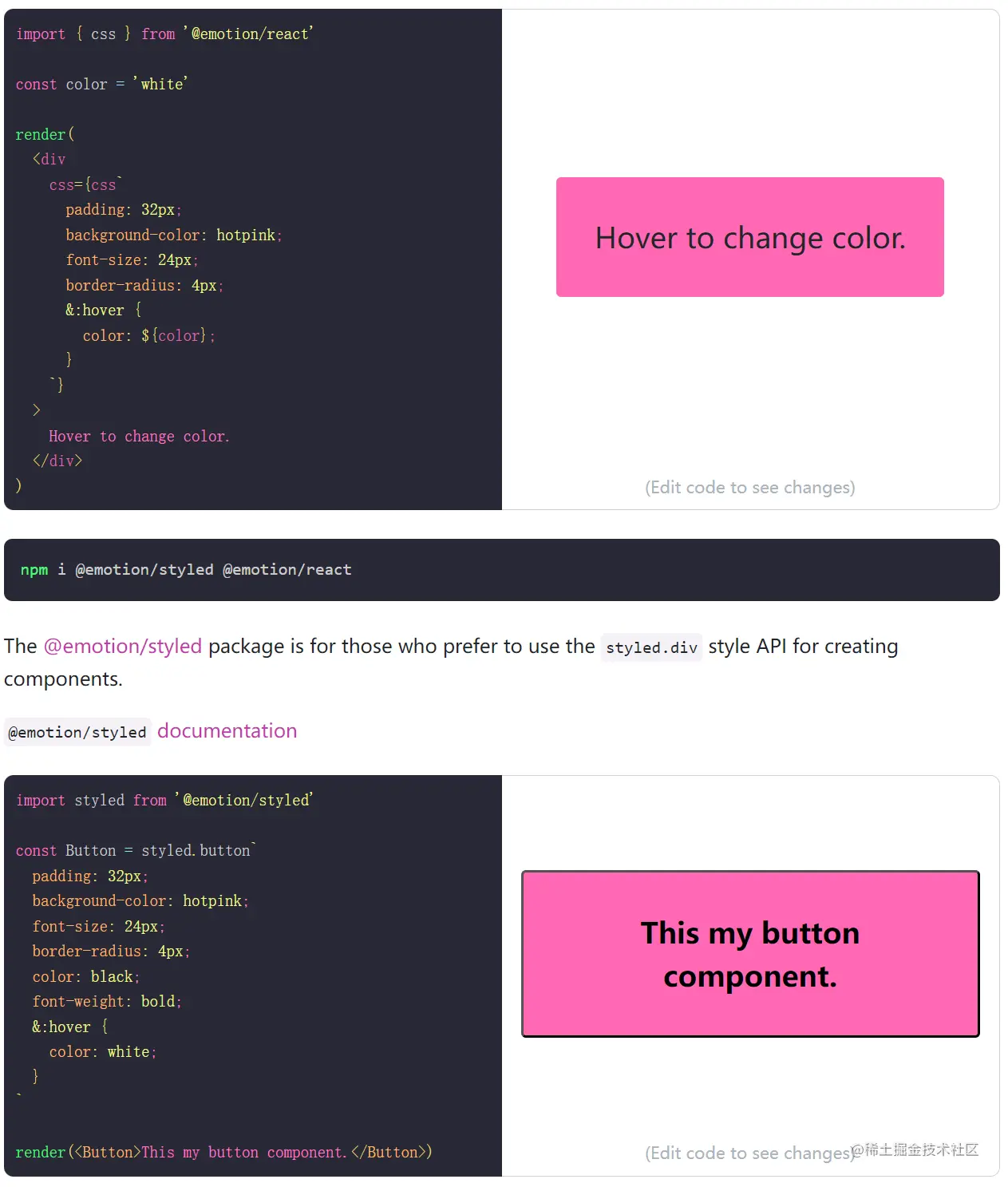 关于两个 CSS-in-JS 库,引用这篇文章里作者的总结:对于简单、高效和不复杂的样式处理,Emotion 是一个很好的 CSS-to-JS 库。另一方面,对于更独特和复杂的样式选项,styled-components 可能是更好的选择。就像写 CSS 一样,很大程度上取决于项目设置和个人偏好。
