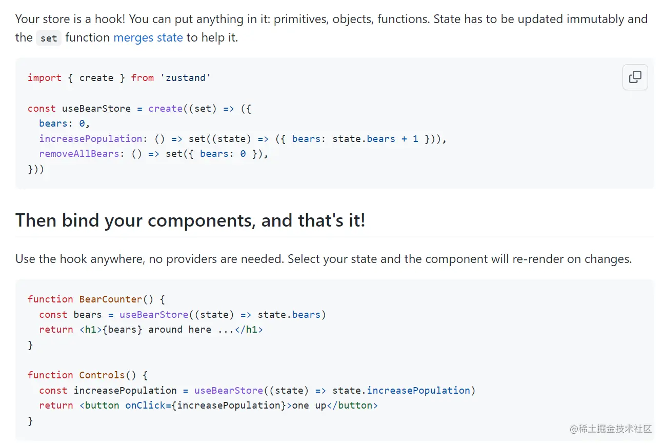 一个小巧、快速和可扩展的基于简化 Flux 原则的骨架状态管理解决方案。它具有基于 hooks 的舒适 API,没有样板代码,也没有过多的观点。