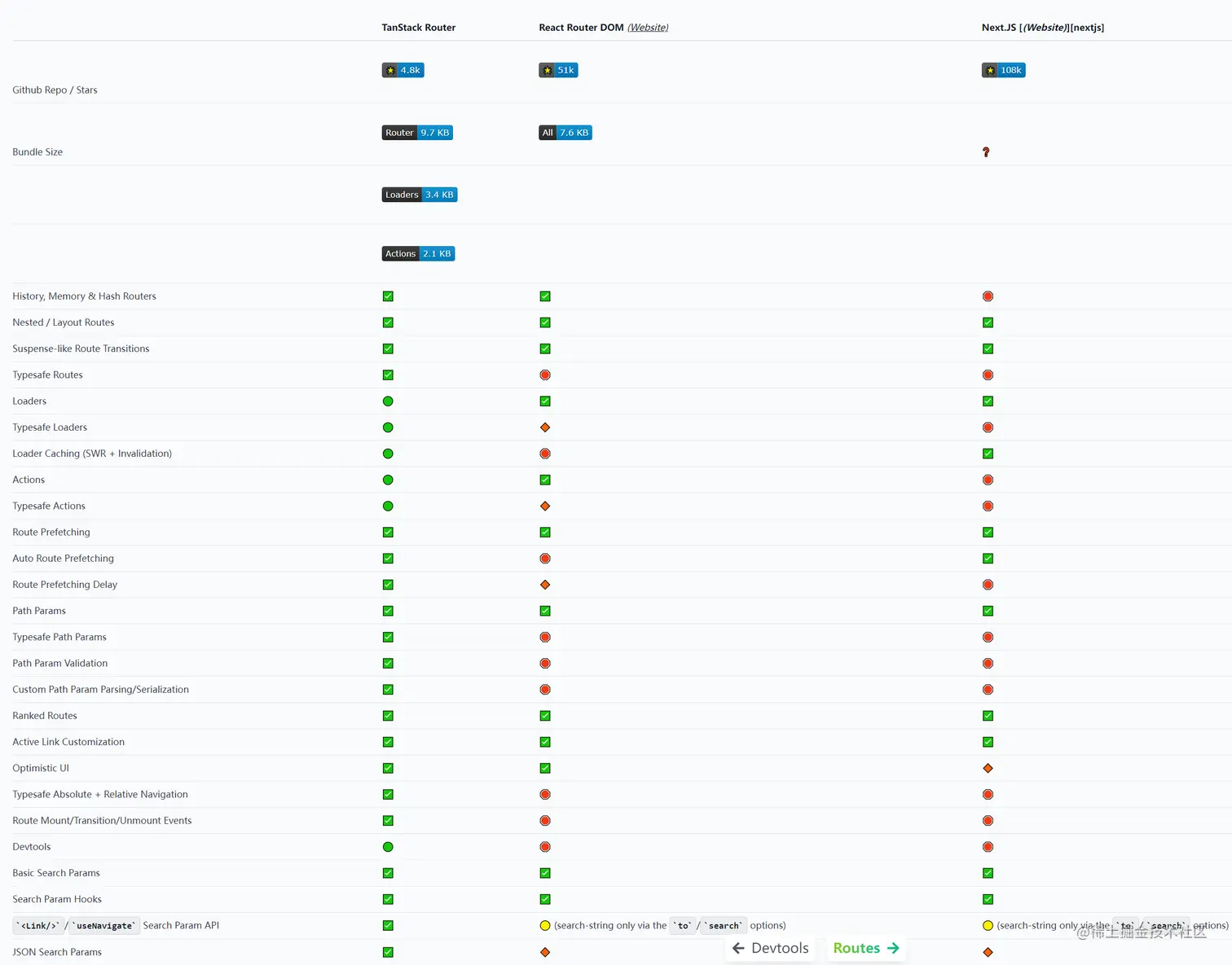 大致可以看出,TanStack Router 的主要优势在于类型安全、SWR 策略以及 Devtools 支持等等……