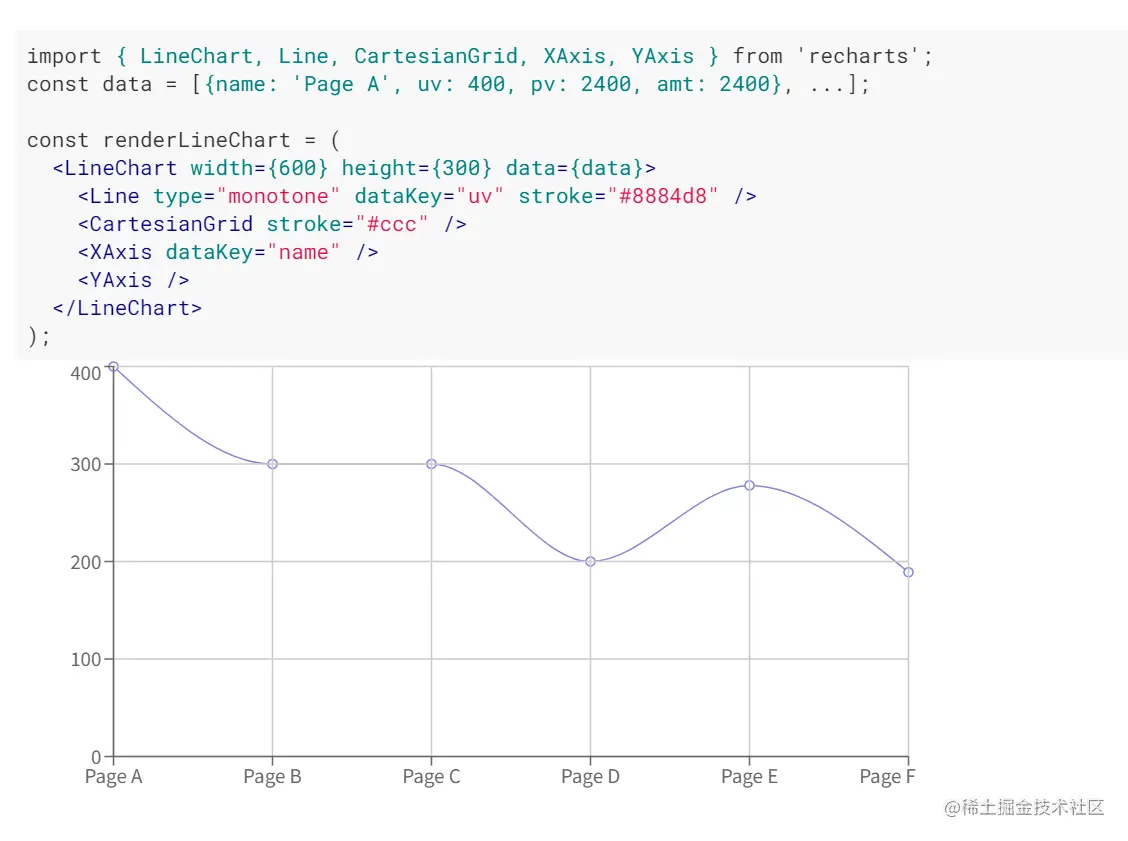 Recharts 的审美风格看起来挺简洁的,不过应该又要学一套概念。