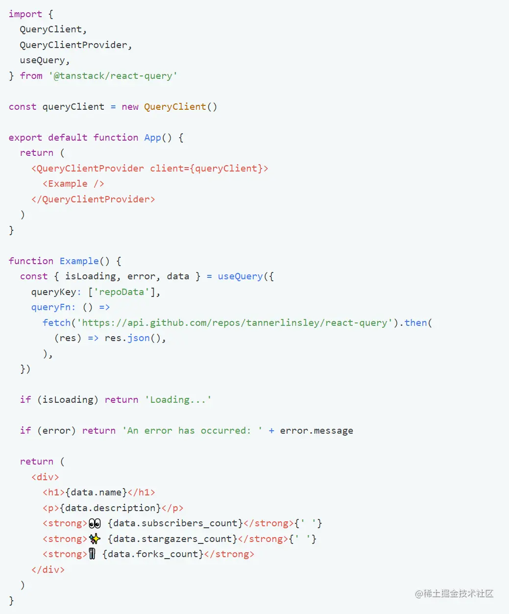 - 帮助你从应用程序中删除许多复杂和误解的代码,并用几行 React Query 逻辑替代。