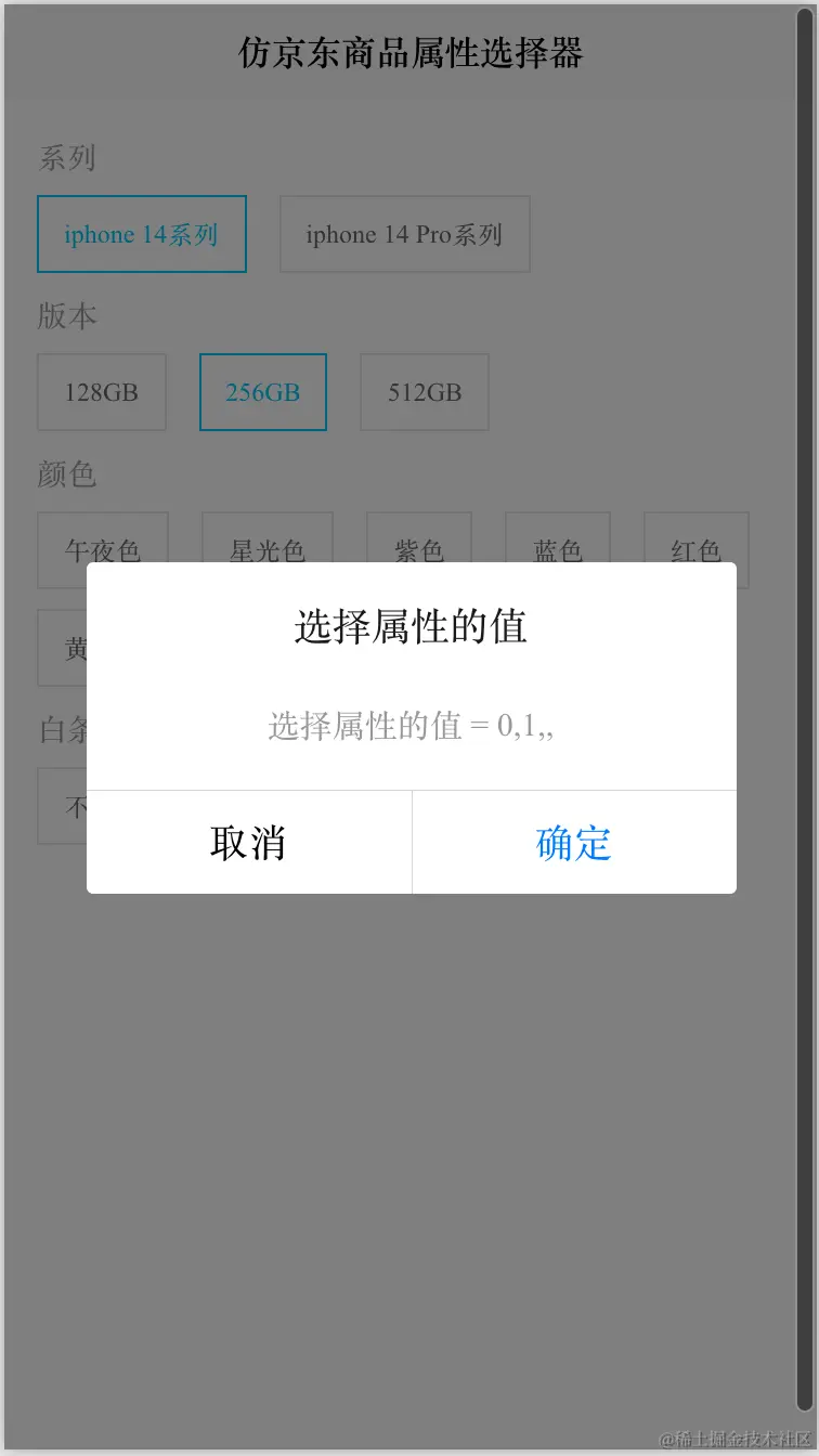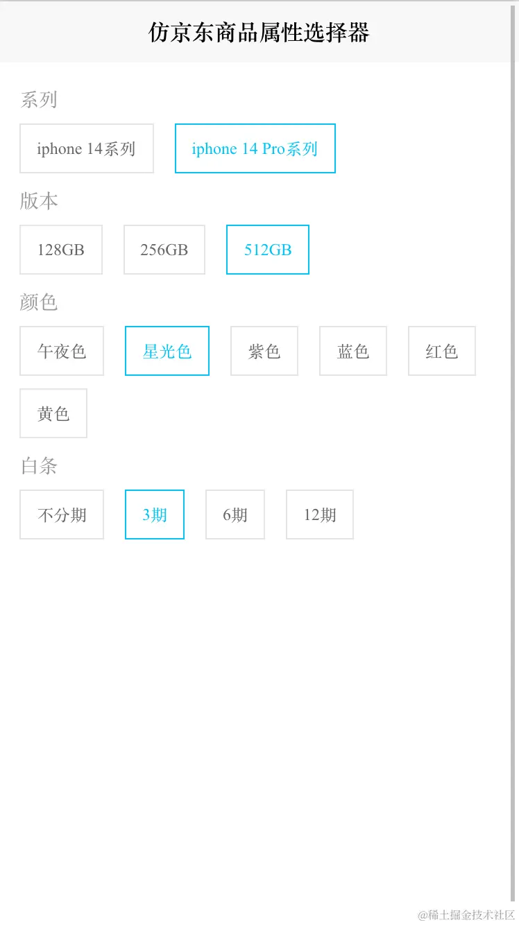 前端Vue仿京东天猫商品属性选择器自定义单选按钮,