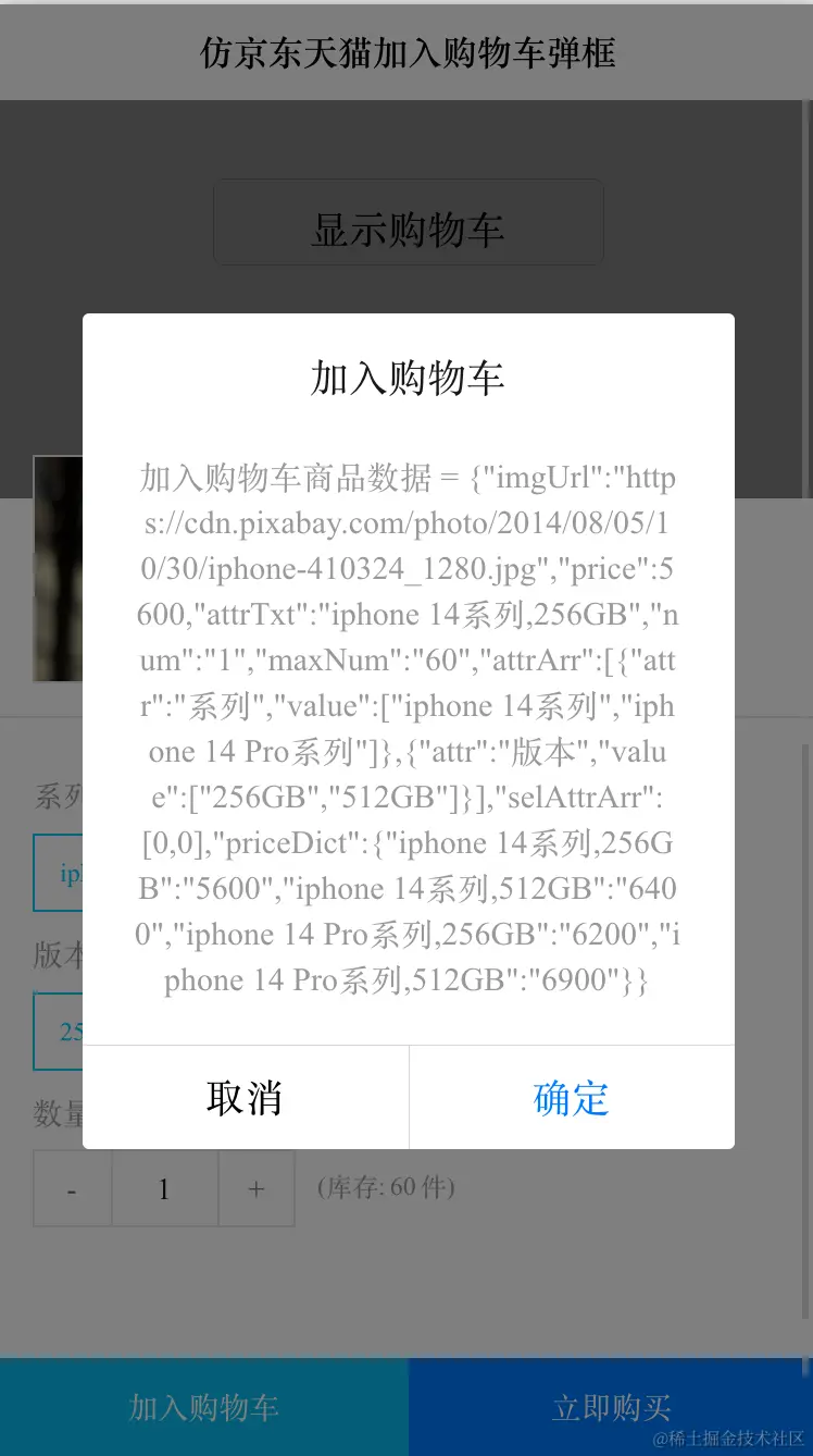 content: '加入购物车商品数据 = ' + JSON.stringify(item)
